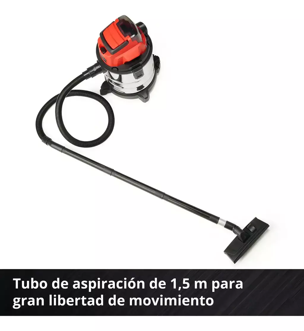 El aspirador en seco y húmedo sin cable TC-VC 18/20 Li S-Solo de Einhell es un miembro de alto rendimiento de la serie Power X-Change, la serie de sistemas flexibles e intercambiables de Einhell. Un aspirador en seco y húmedo es un ayudante indispensable para trabajos de limpieza exhaustivos, profundos e intensivos. Los textiles como asientos y fundas de coche, sofás o sillones se limpian en profundidad en las fibras con un aspirador en seco y húmedo, no sólo en la superficie. Para alfombras o textiles fijos también, así como azulejos o todo tipo de baldosas esmaltadas con poros abiertos, la limpieza de la superficie por sí sola a menudo no es suficiente. El aspirador en seco y húmedo proporciona una limpieza a fondo y es un complemento ideal para los aparatos de limpieza domésticos estándar cuando se trata de suciedad persistente y arraigada. En patios y balcones, el aspirador en húmedo y seco devuelve el brillo a las superficies que no son sensibles al agua, suelos y paneles de pared, así como juntas y puntales de balcones. Todas las baterías recargables del sistema de la serie Power X-Change pueden combinarse con todos los aparatos PXC. El depósito de acero inoxidable inoxidable tiene una capacidad de 20 litros y el sistema de mangueras con un diámetro de 36 mm mantiene un alto caudal de aire y suciedad. La conexión de soplado sirve para limpiar por soplado zonas de difícil acceso, como esquinas, ángulos complicados o debajo de las escaleras. Cuatro ruedas robustas garantizan una buena movilidad y flexibilidad. Para guardar los accesorios de forma ordenada, dispone de un práctico soporte. El producto se suministra con una manguera de aspiración de plástico de 1,50 m y un tubo de prolongación de tres piezas, una boquilla combinada grande, una boquilla para hendiduras y otra para tapicerías, así como un filtro de espuma y otro de pliegues y una bolsa para la suciedad. Este producto se suministra sin batería ni cargador. Estos están disponibles por separado, por ejemplo como un práctico juego de inicio con diferentes capacidades de batería.