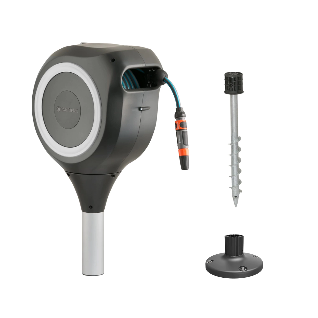 El Soporte Gardena RollUp M con base 20m es la solución ideal para mantener tu jardín ordenado y la manguera en perfecto estado. Diseñado para terrazas y jardines medianos, este portamanguera cuenta con una función de enrollado automático que facilita su uso y almacenamiento.